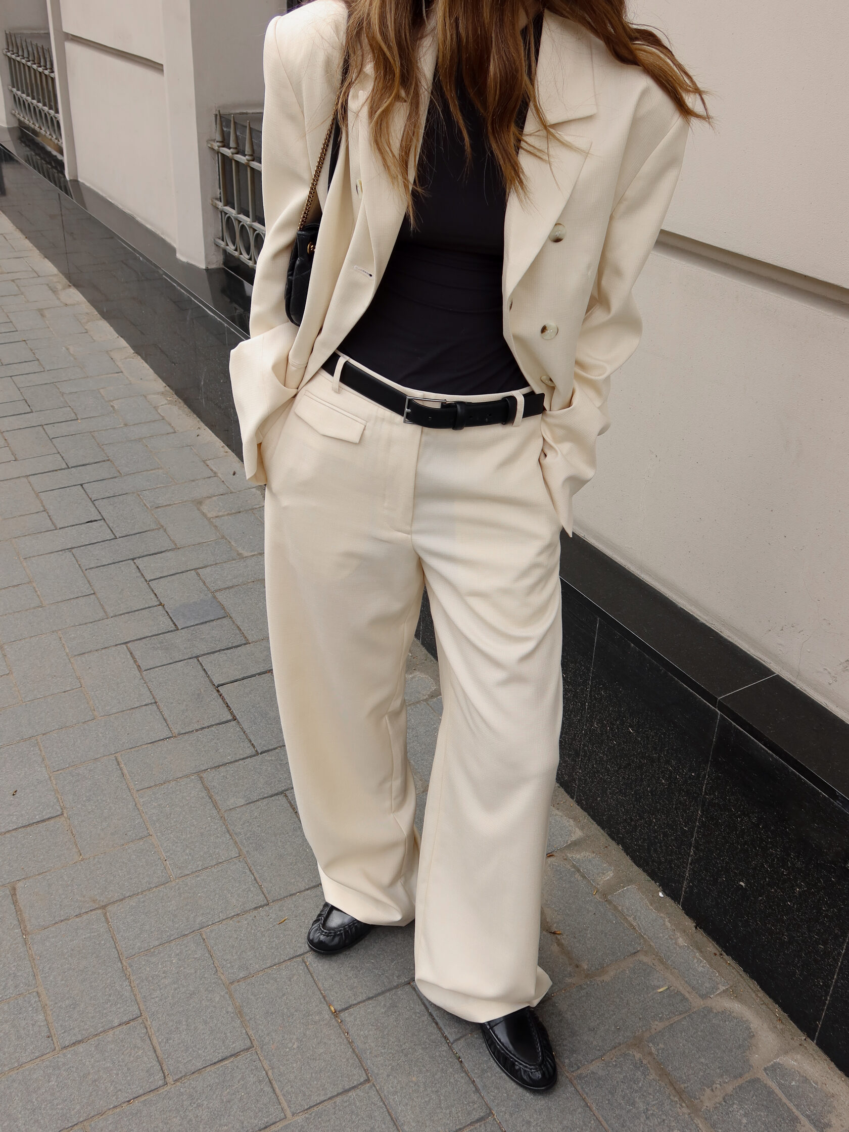 Прямые брюки с декоративным клапаном. Посадка брюк на бедрах. Ткань с легко выраженной льняной фактурой придает воздушности образу.