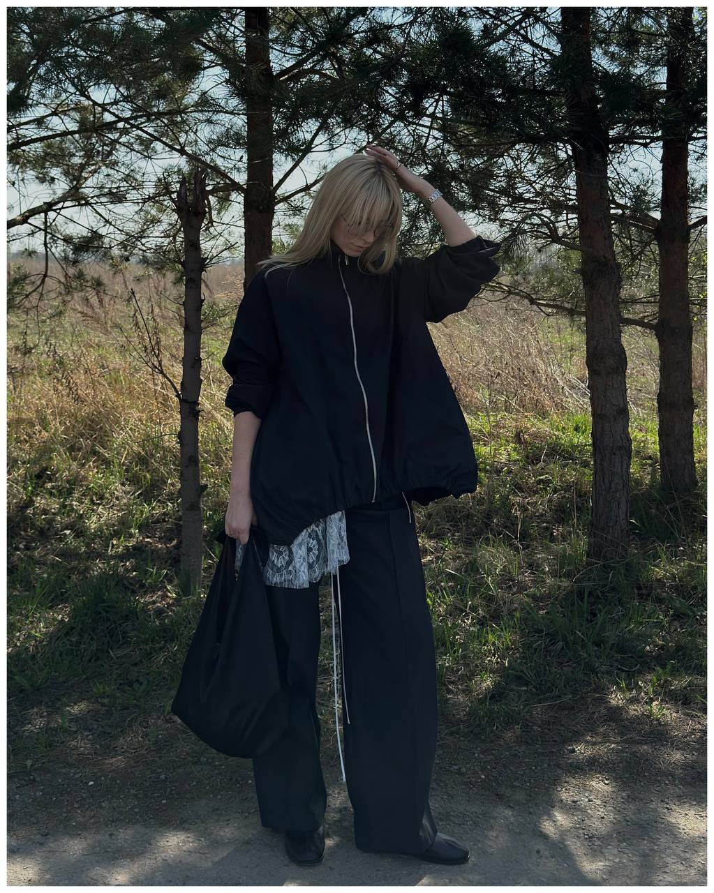 Брюки из хлопковой плащевой ткани с водоотталкивающей пропиткой. Пояс на резинке, стрелки дополнительно прострочены, чтобы держать силуэт и визуально вытягивать. Карманы по бокам.