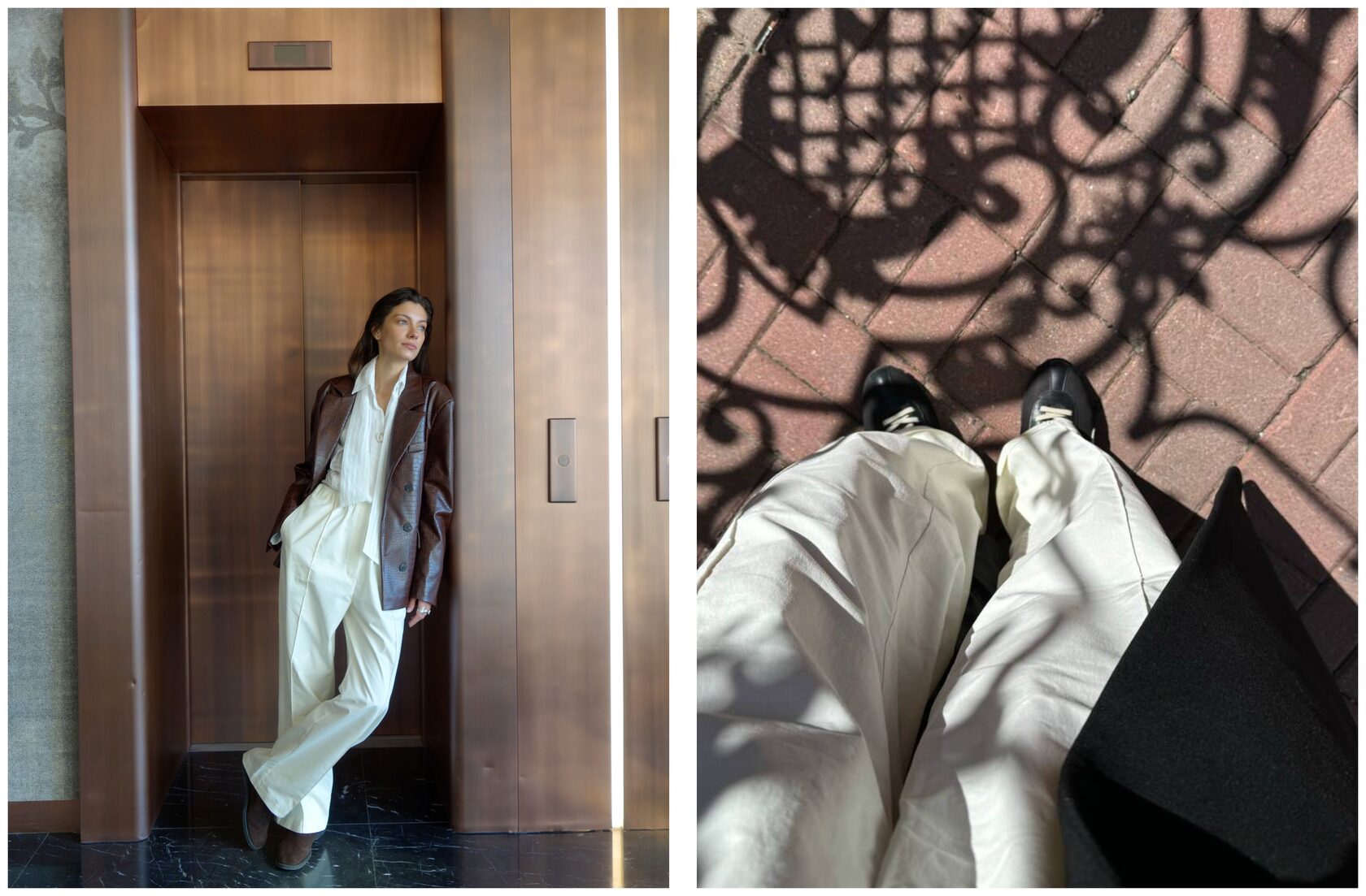 Брюки из хлопковой плащевой ткани с водоотталкивающей пропиткой. Пояс на резинке, стрелки дополнительно прострочены, чтобы держать силуэт и визуально вытягивать. Карманы по бокам.