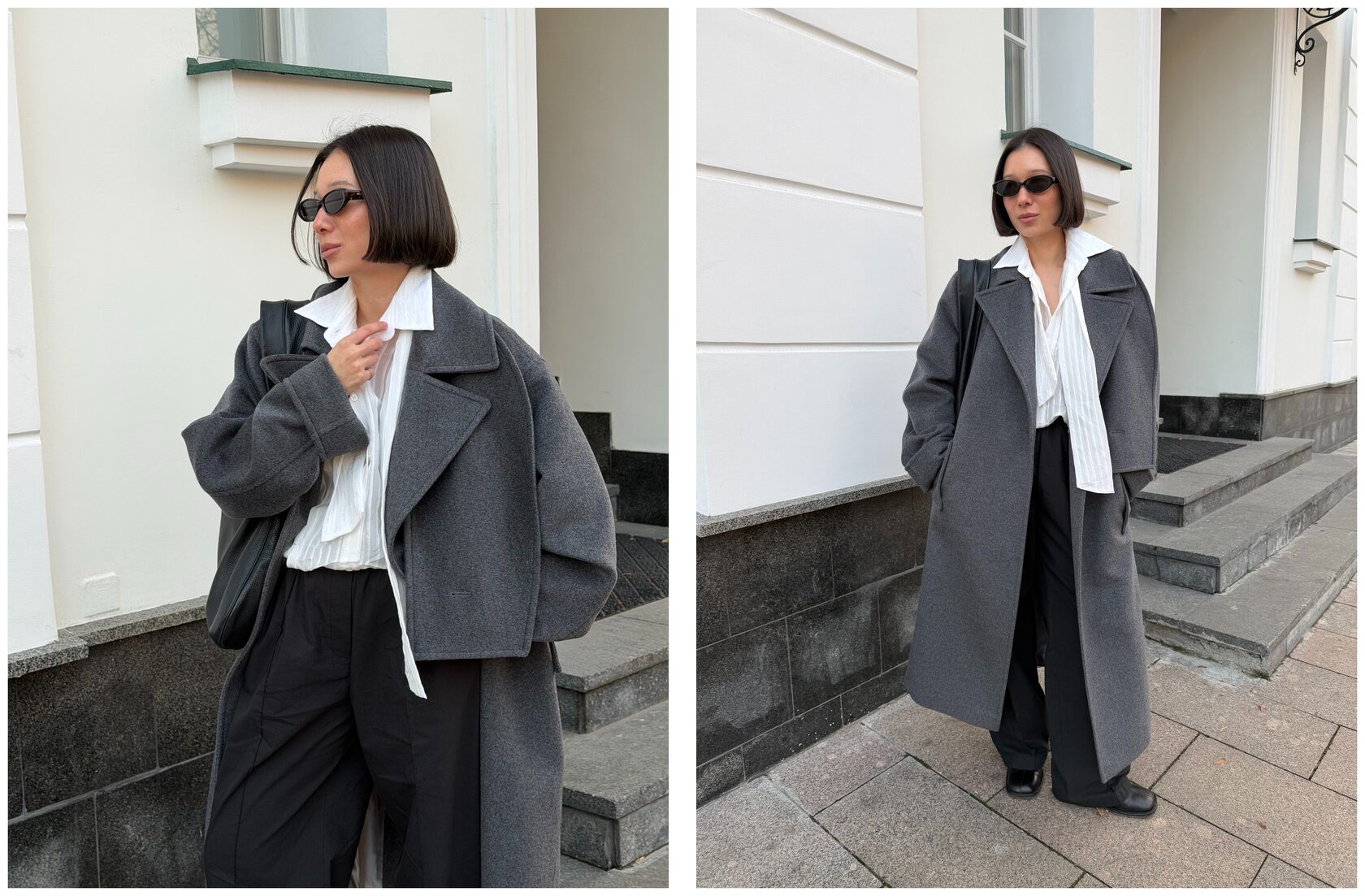 Объемное пальто со съемным воротником из шерсти. Пальто-халат с поясом. Свободный силуэт. Вискозная подкладка. Шлевки для пояса спущены на линию бедра для трендовой посадки. Съемная деталь в виде воротника - акцент изделия и функциональная вещь, которая защитит от ветра и снега.