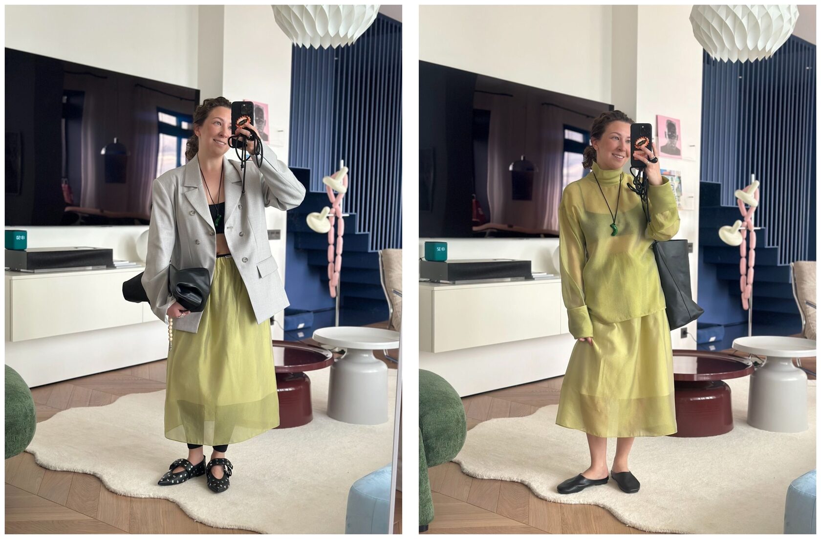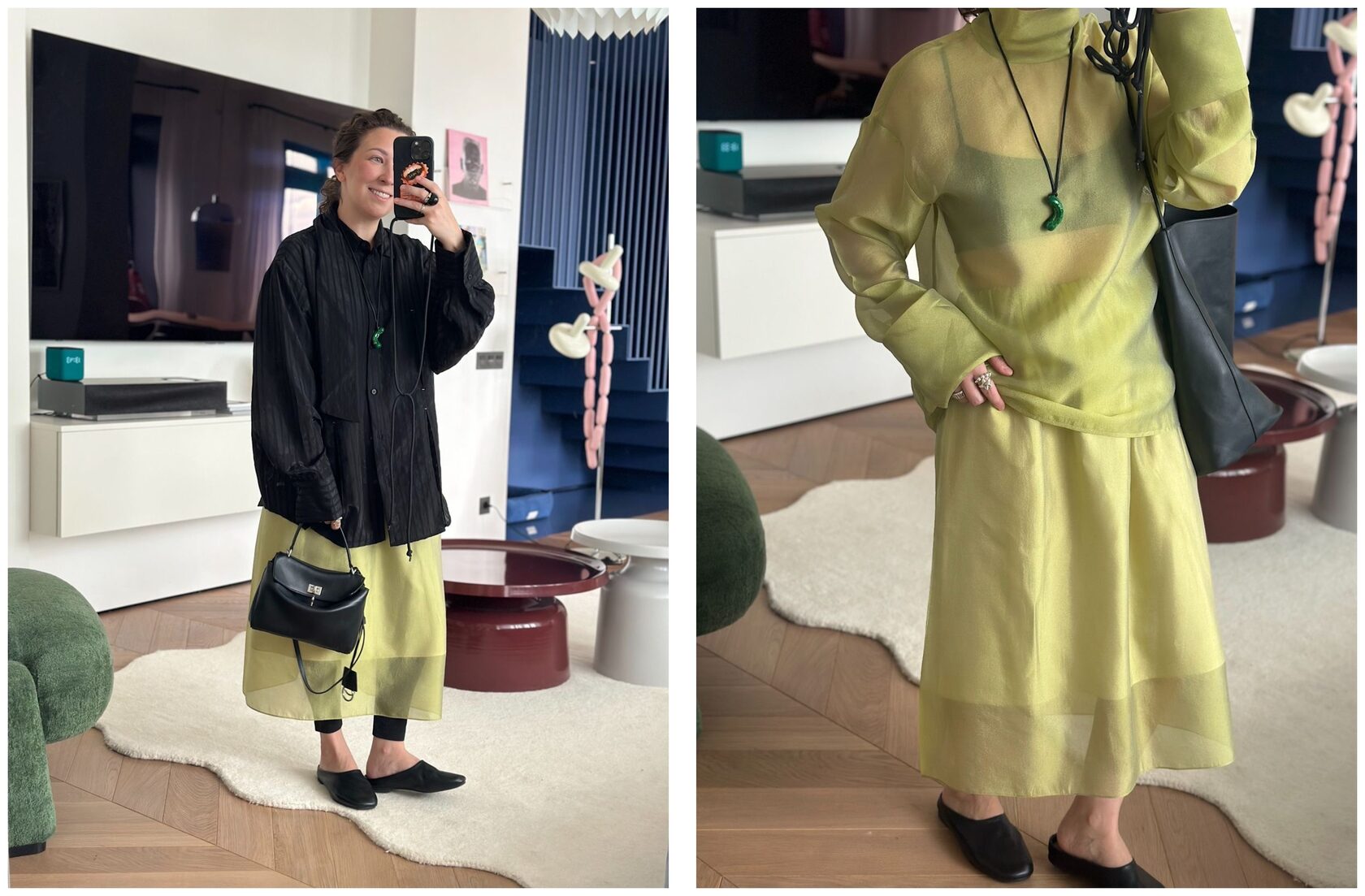 Юбка на резинке с подкладкой. Изделие выполнено из вискозной органзы, пояс на резинке, шлица в шве по спинке для свободы в движении. Сочетайте с простыми футболками, анораками, толстовками. Или образуйте сет с летящей Блузой B1.