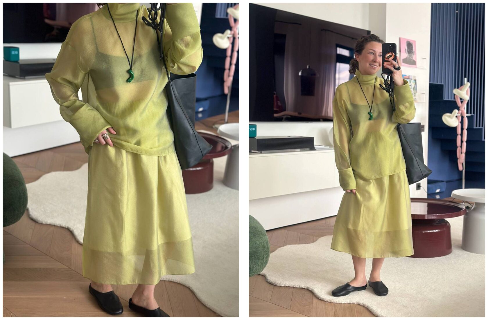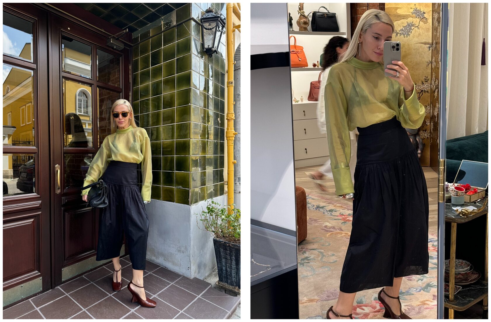 Летящая блуза из вискозной органзы. Воротник стойка и удлиненные манжеты. Закрытые швы по всему изделию. Блуза образует сет Юбкой S8. Сочетайте с Брюками T3 из плащевой ткани, джинсами и классическими брюками-палаццо.